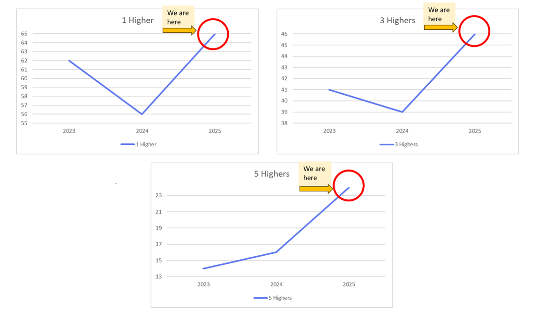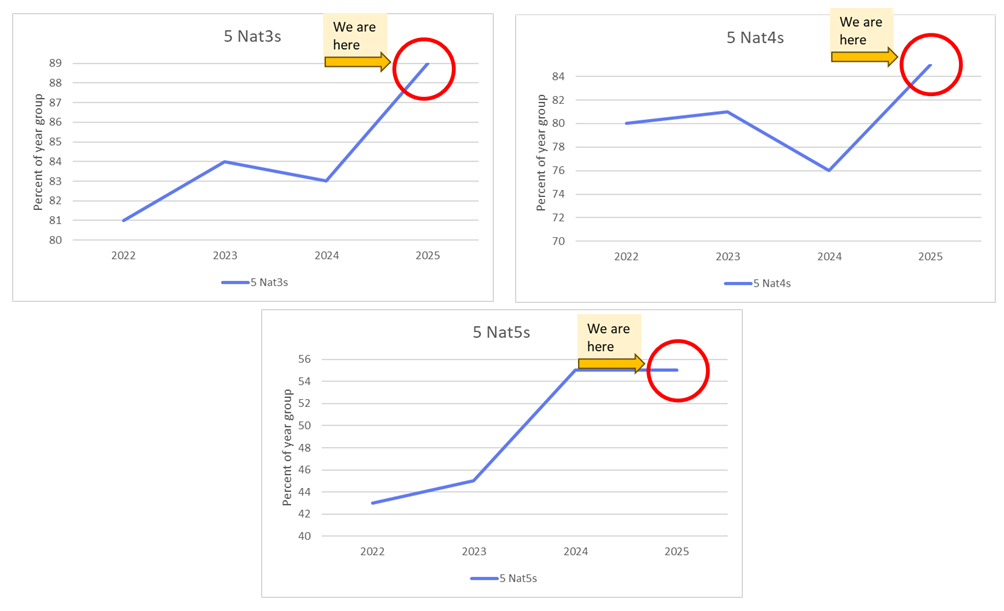 Below are simple line graphs to show you our increasing attainment at National 3, National 4, National 5, Higher and Advanced Higher. Tap below to see our results in much more detail here: